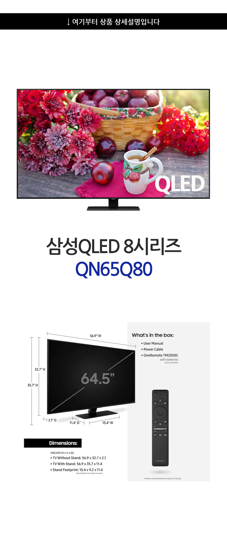 반값 삼성 QLED QN65Q80 65인치 리퍼TV 4K 스마트TV 로컬변경 미사용리퍼 : 메가mall