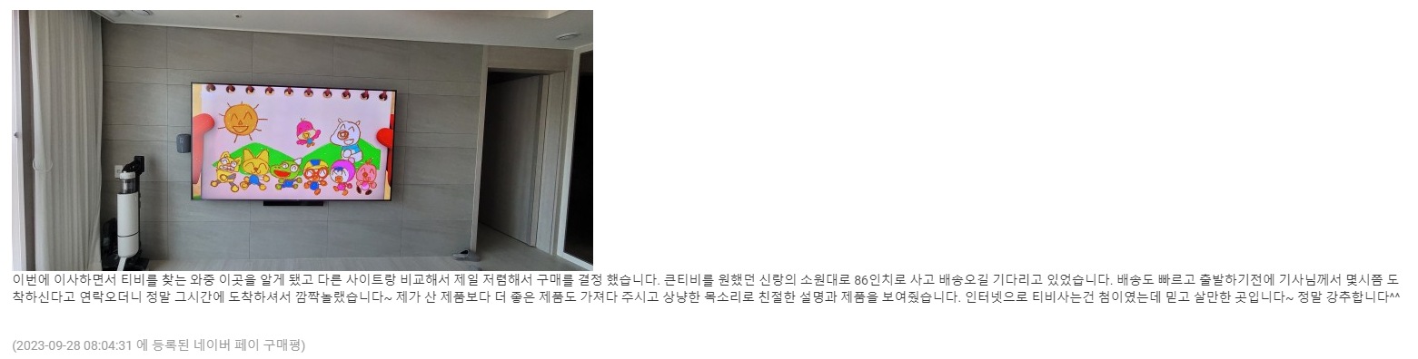 | 삼성 스마트TV 65인치 TV대량 설치 후기 (강원도 영월 호텔) (1) | 2024.03.06 |