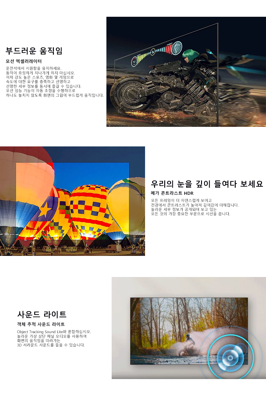UHD 업스케일 기능이 저해상도 영상을 4K와 비슷한 수준으로 변환 시켜 줍니다.