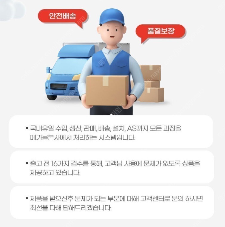하자 없는 제품을 편하고 안전하게 받아보실 수 있습니다.