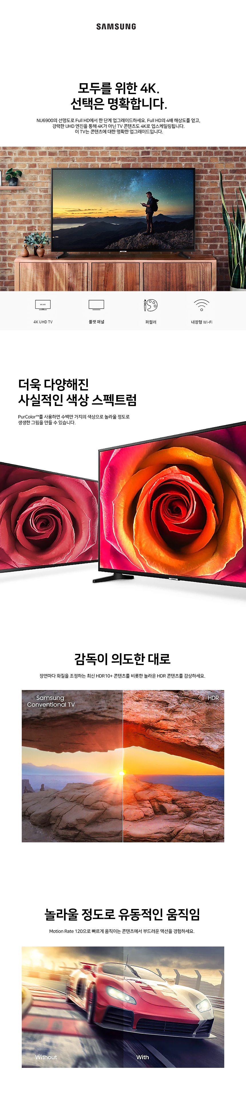 삼성 65인치 165cm 4K UHD 스마트TV HDR 초슬림 65NU6900 벽걸이전용