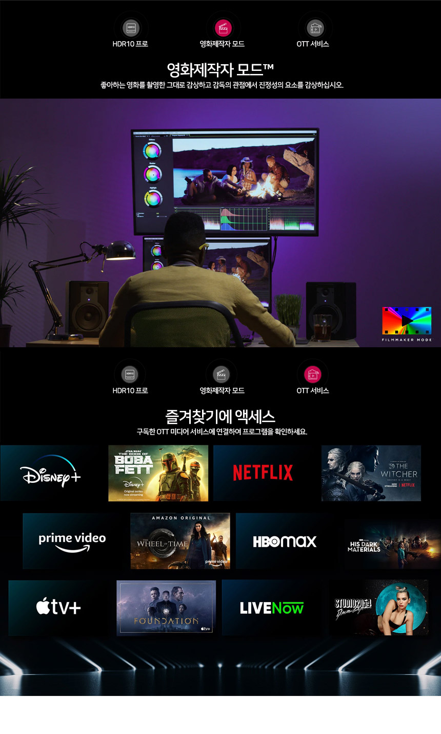 스마트 TV답게 OTT 서비스를 제공하고 있으며,
