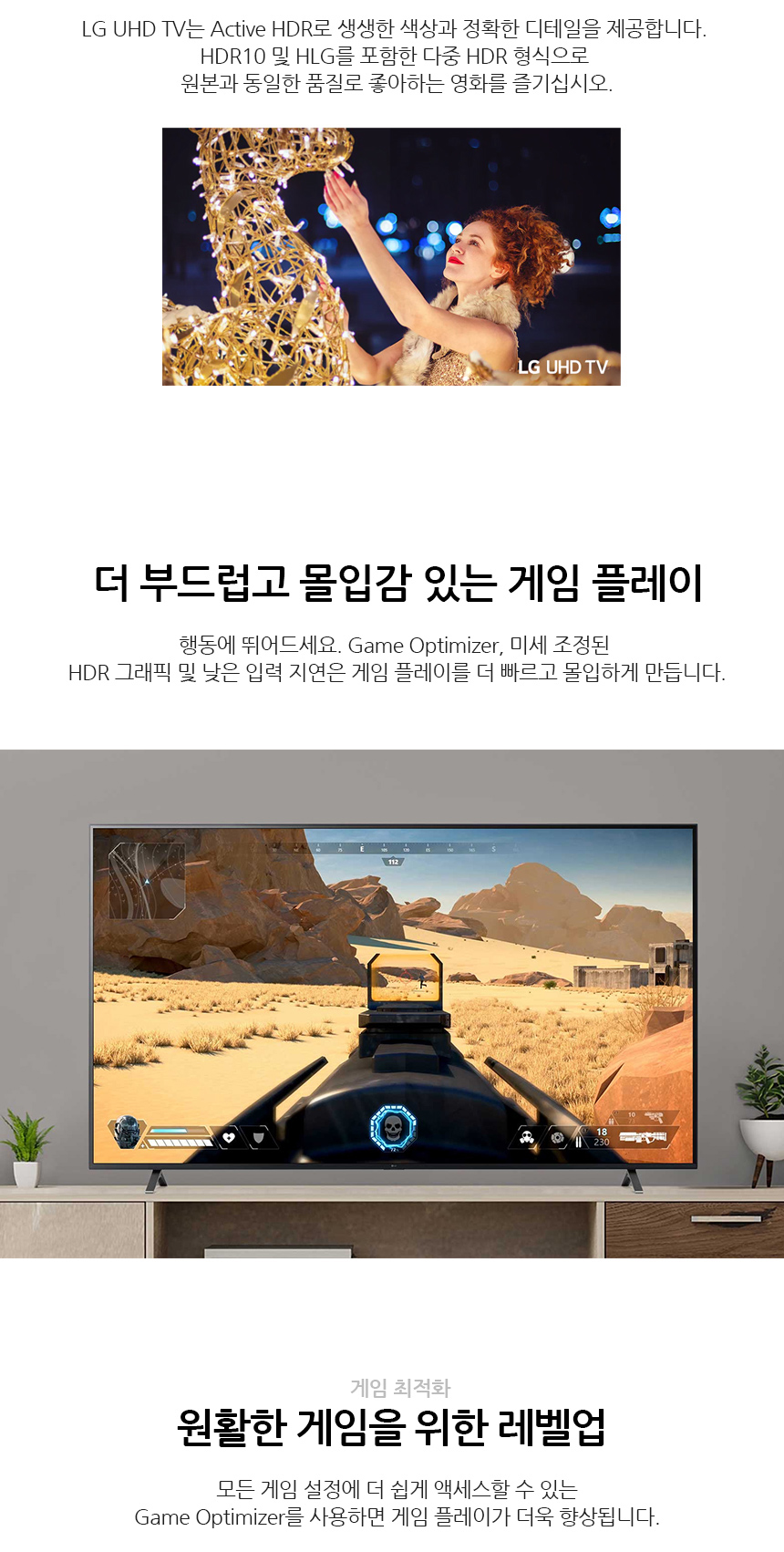 향상된 HDR 그래픽 및 낮은 입력 지연으로 게임을 부드럽게 즐길 수 있으며,