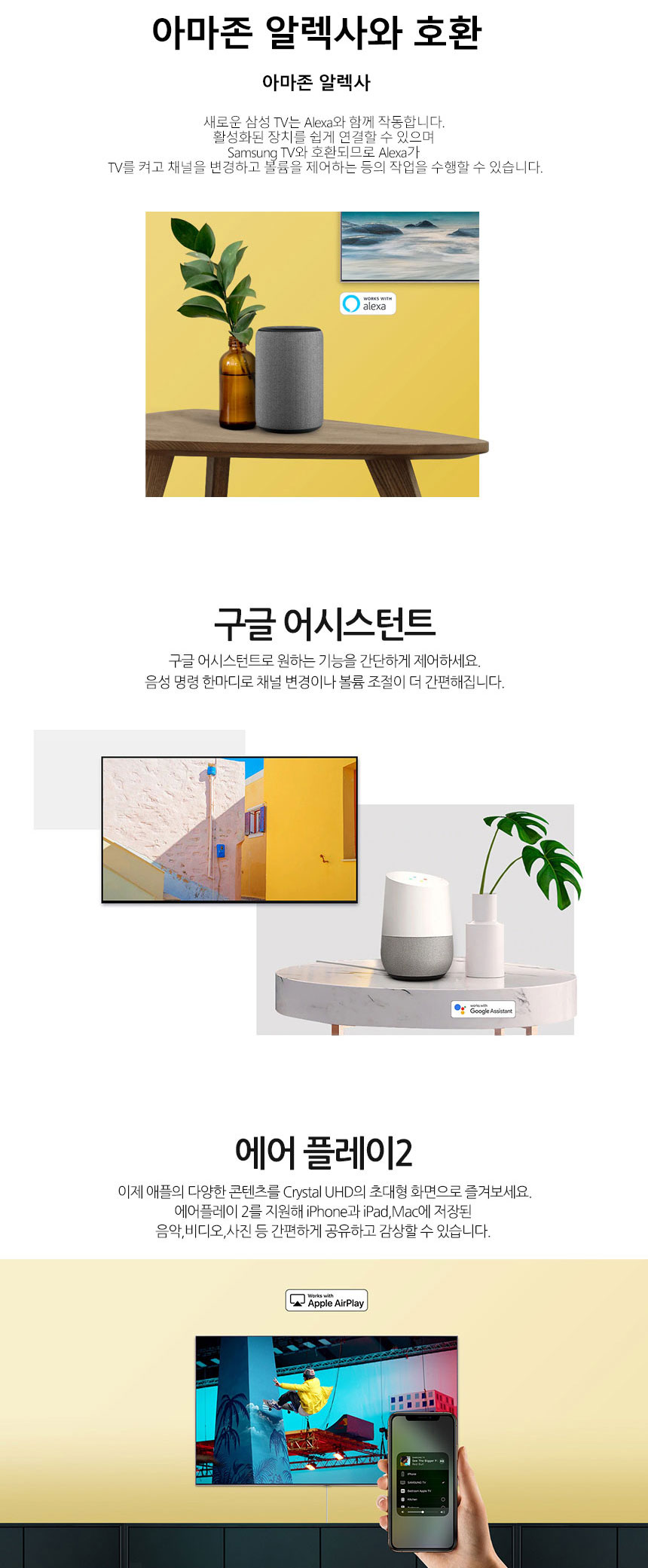 또한 스마트폰과의 미러링도 간편하며, Bixby, 구글 어시스턴드, 아마존 알렉사 등