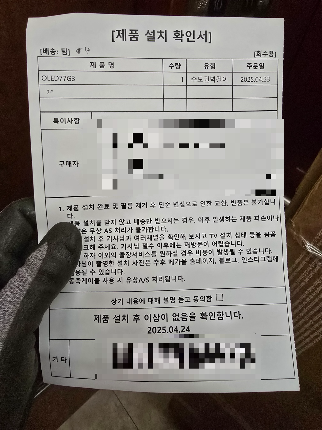 이번에 설치해 드린 제품 중 하나는 LG 77인치 OLED TV였습니다!