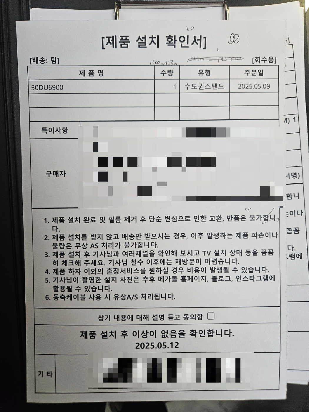이번에는 경기도 광주로 배송한 삼성 50DU6900 모델입니다!